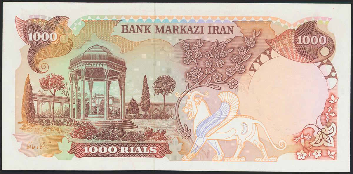 IRAN. 1000 Rials. (1974ca). National Bank. Signatures: Khoshkish and Yeganeh, black security thread. (Pick: 105d). Uncirculated.