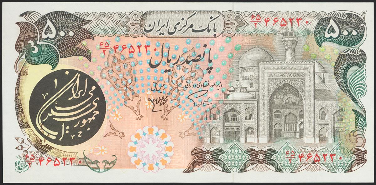 IRAN. 500 Rials. 1981. Islamic Republic. (Pick: 128). Minor mishandling on lower left corner. About Uncirculated.