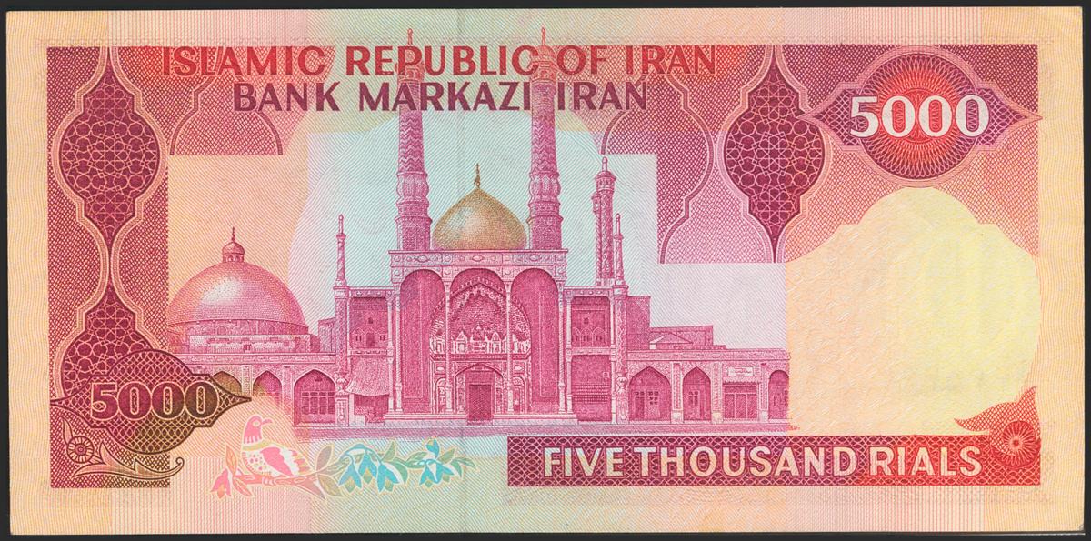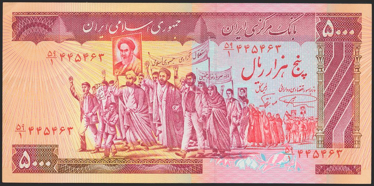 IRAN. 5000 Rials. (1983ca). Islamic Republic. Signatures: Nourbakhsh and Nemazi. (Pick: 139a). Mishandling on the left. About Uncirculated.