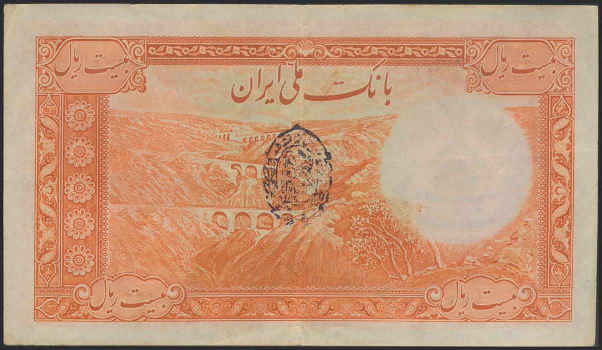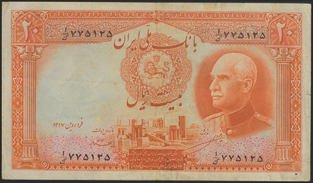 IRAN. 20 Rials. 1938. (Pick: 34Af). Rare. Very Fine.