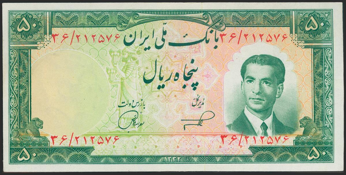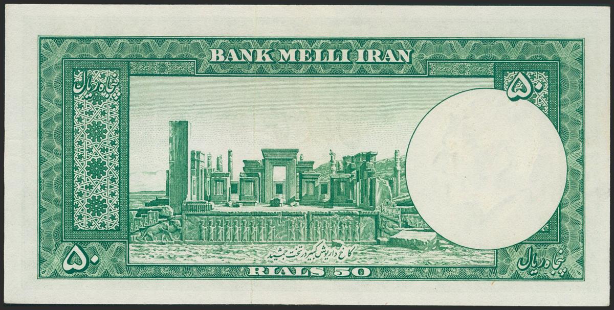 IRAN. 50 Rials. 1953 (SH 1332). National Bank. (Pick: 61). About Uncirculated.