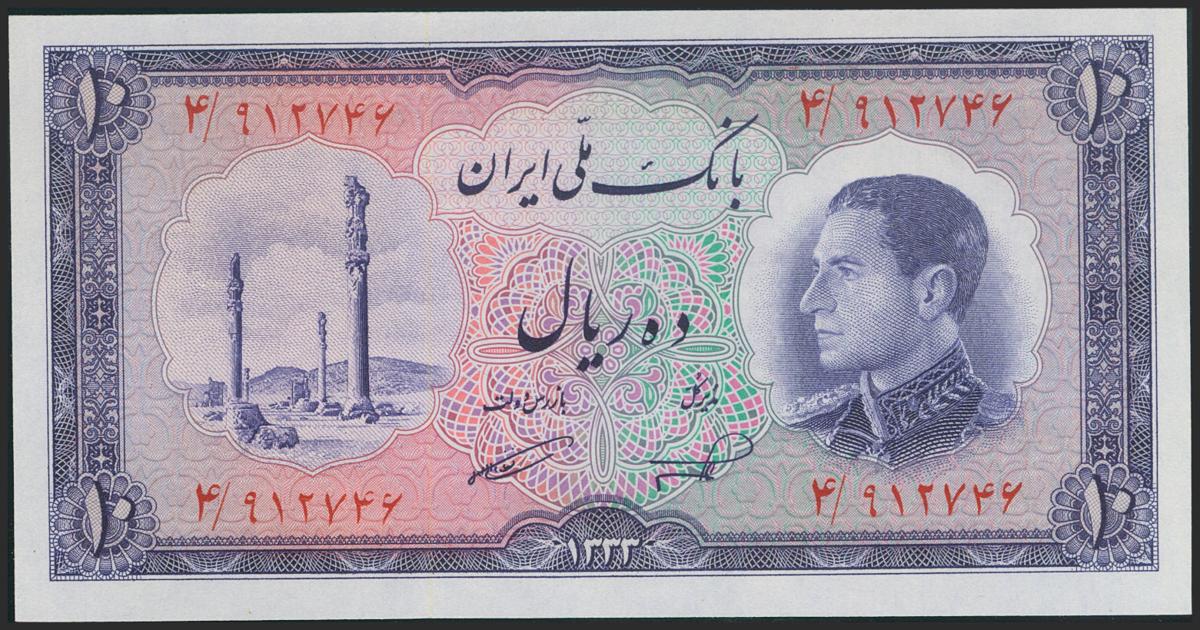 IRAN. 10 Rials. 1954 (SH 1333). National Bank. (Pick: 64). Uncirculated.