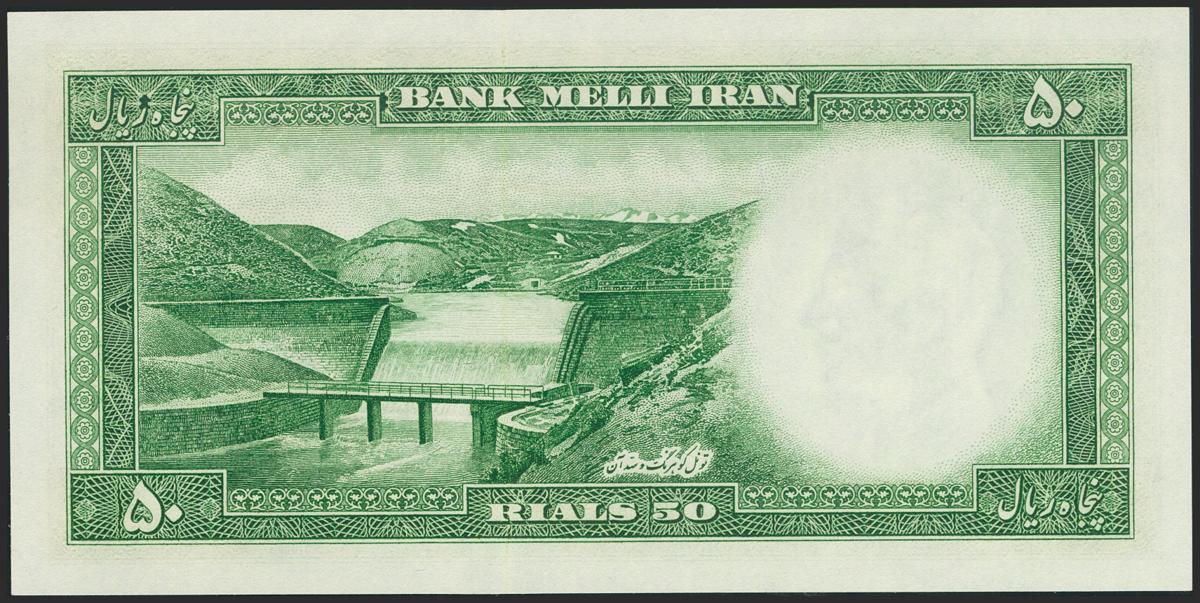 IRAN. 50 Rials. 1954 (SH 1333). National Bank. (Pick: 66). Uncirculated.