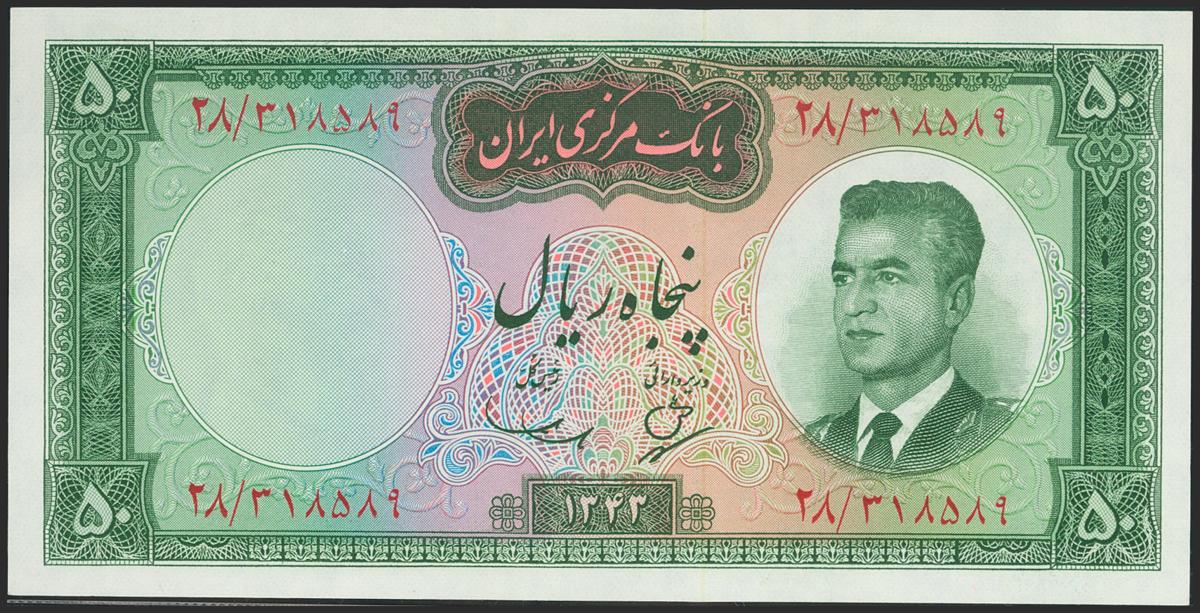 IRAN. 50 Rials. 1964 (SH 1343). National Bank. (Pick: 76). Uncirculated.