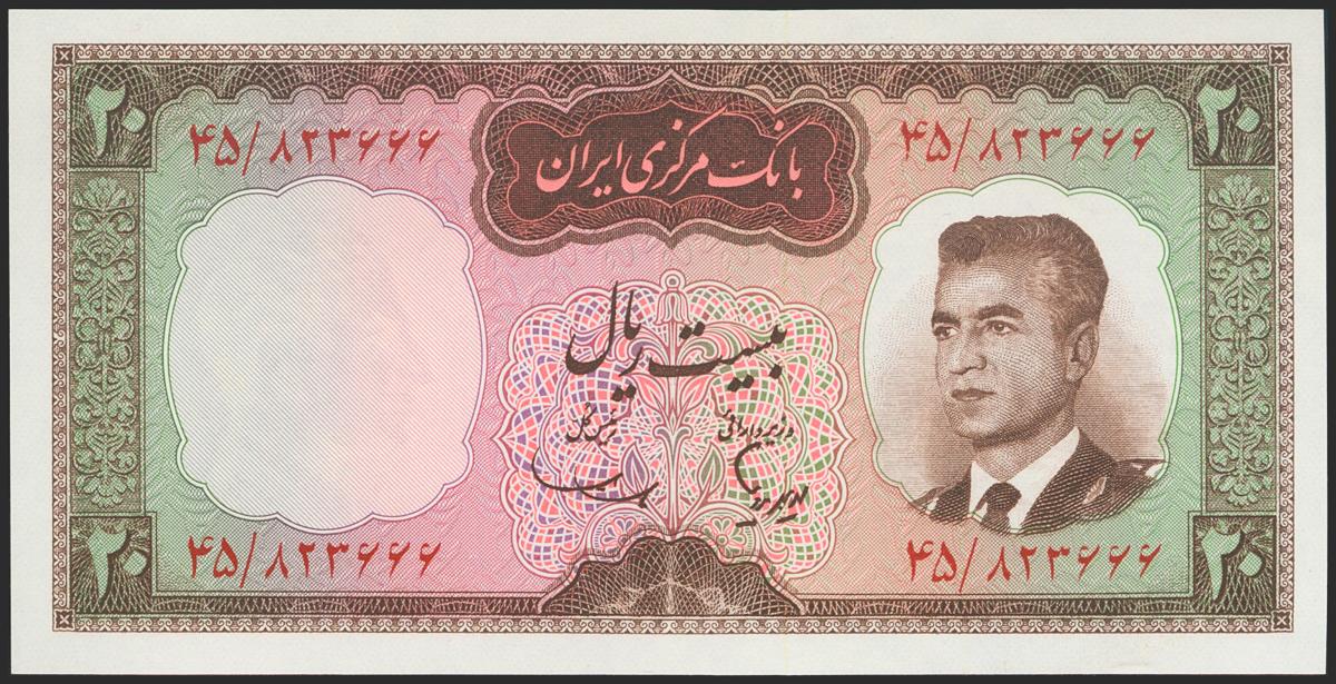 IRAN. 20 Rials. 1965. National Bank. Signatures: Samii and Hoveyda. (Pick: 78b). Uncirculated.