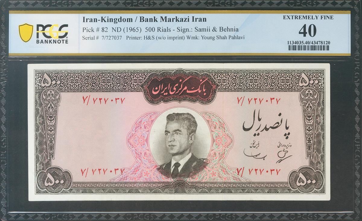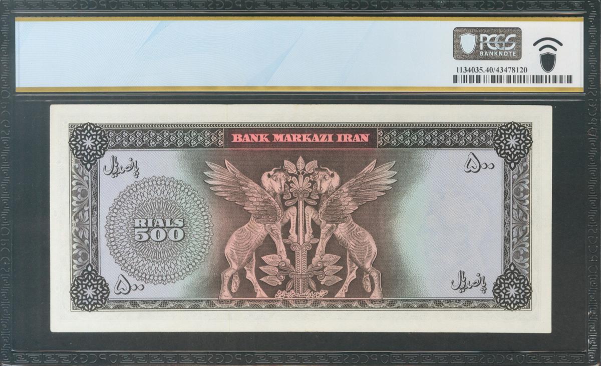 IRAN. 500 Rials. 1965. National Bank. Signatures: Samii and Behnia. (Pick: 82). Extremely Fine. PCGS40.