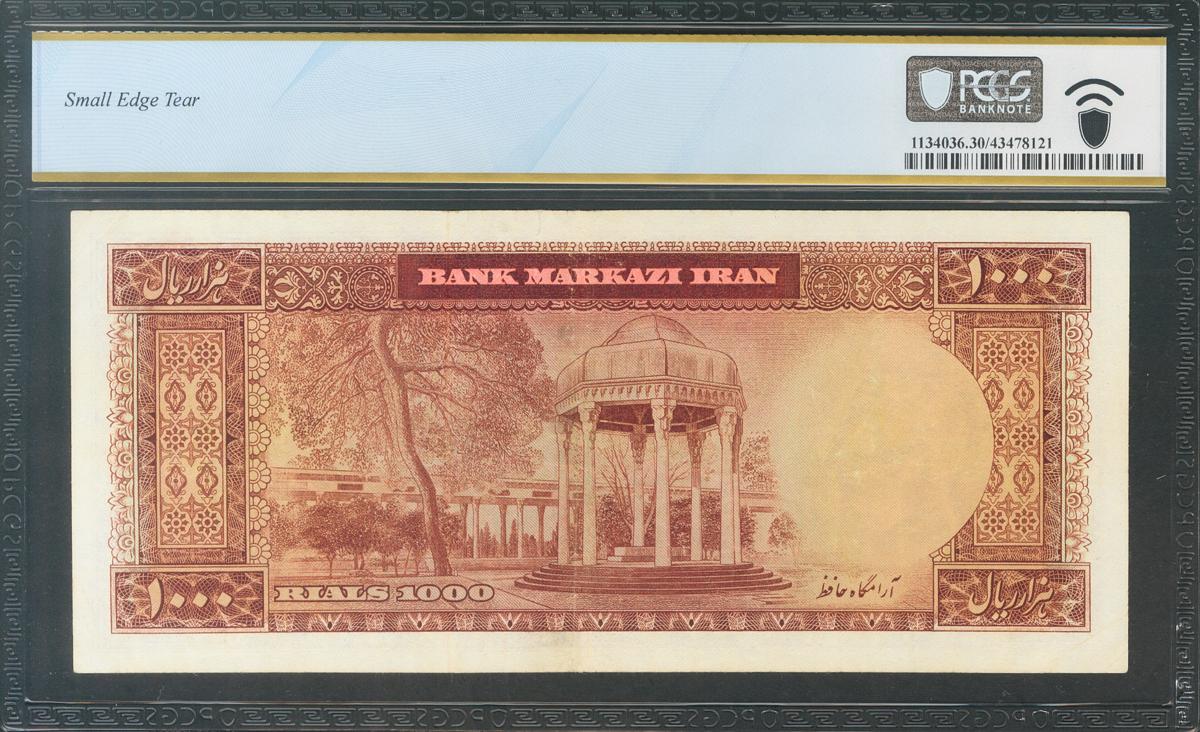 IRAN. 1000 Rials. 1965. National Bank. Signatures: Samii and Behnia. (Pick: 83). Very Fine. PCGS30 (small edge tear).