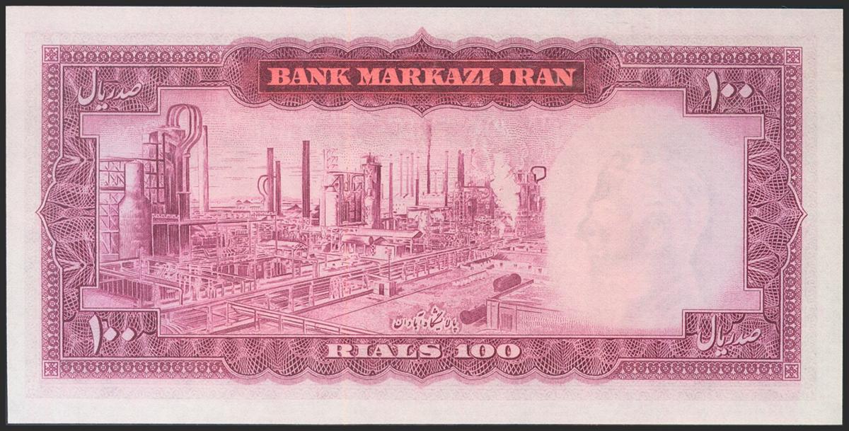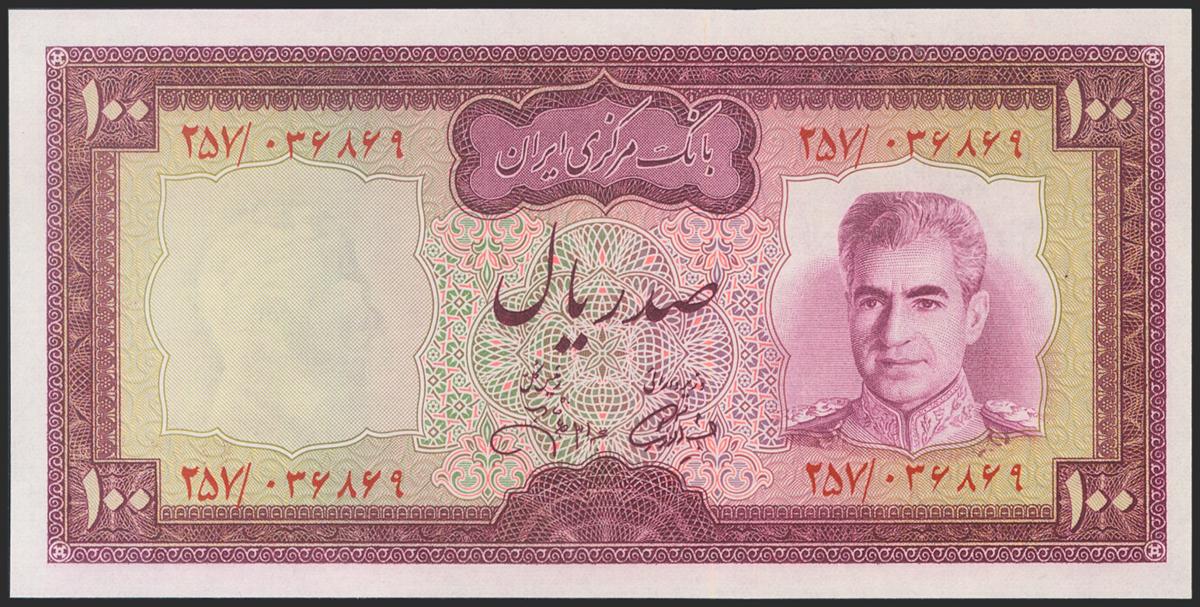 IRAN. 100 Rials. 1971. National Bank. Signatures: Jahanshahi and Amouzegar. (Pick: 91c). Light panel. Uncirculated.