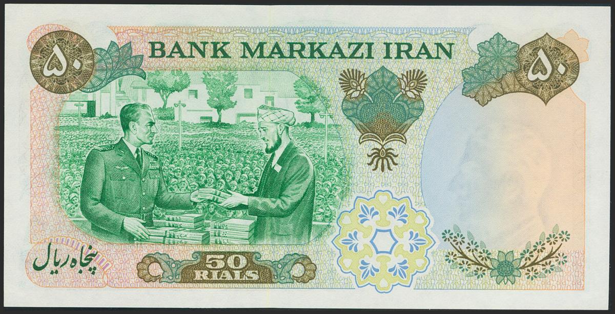 IRAN. 50 Rials. 1971 (SH 1350). National Bank. Signatures: Samii and Amouzegar. (Pick: 97a). Uncirculated.