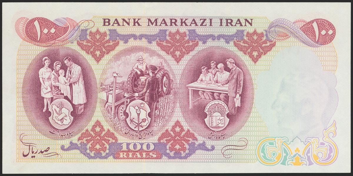 IRAN. 100 Rials. 1971 (SH 1350). National Bank. Signatures: Samii and Amouzegar. (Pick: 98). Uncirculated.