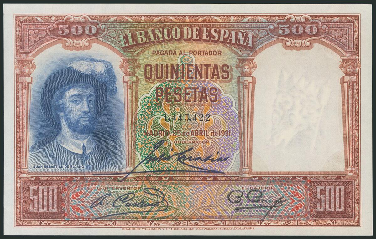 500 Pesetas. 25 de Abril de 1931. Sin serie. (Edifil 2017: 361). Apresto original. EBC++.