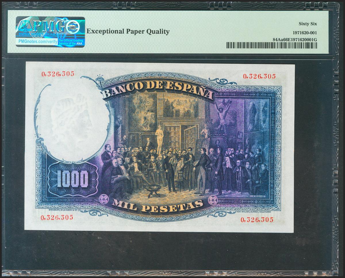 1000 Pesetas. 25 de Abril de 1931. Sin serie. (Edifil 2017: 362). Apresto original. SC. Encapsulado PMG66EPQ.