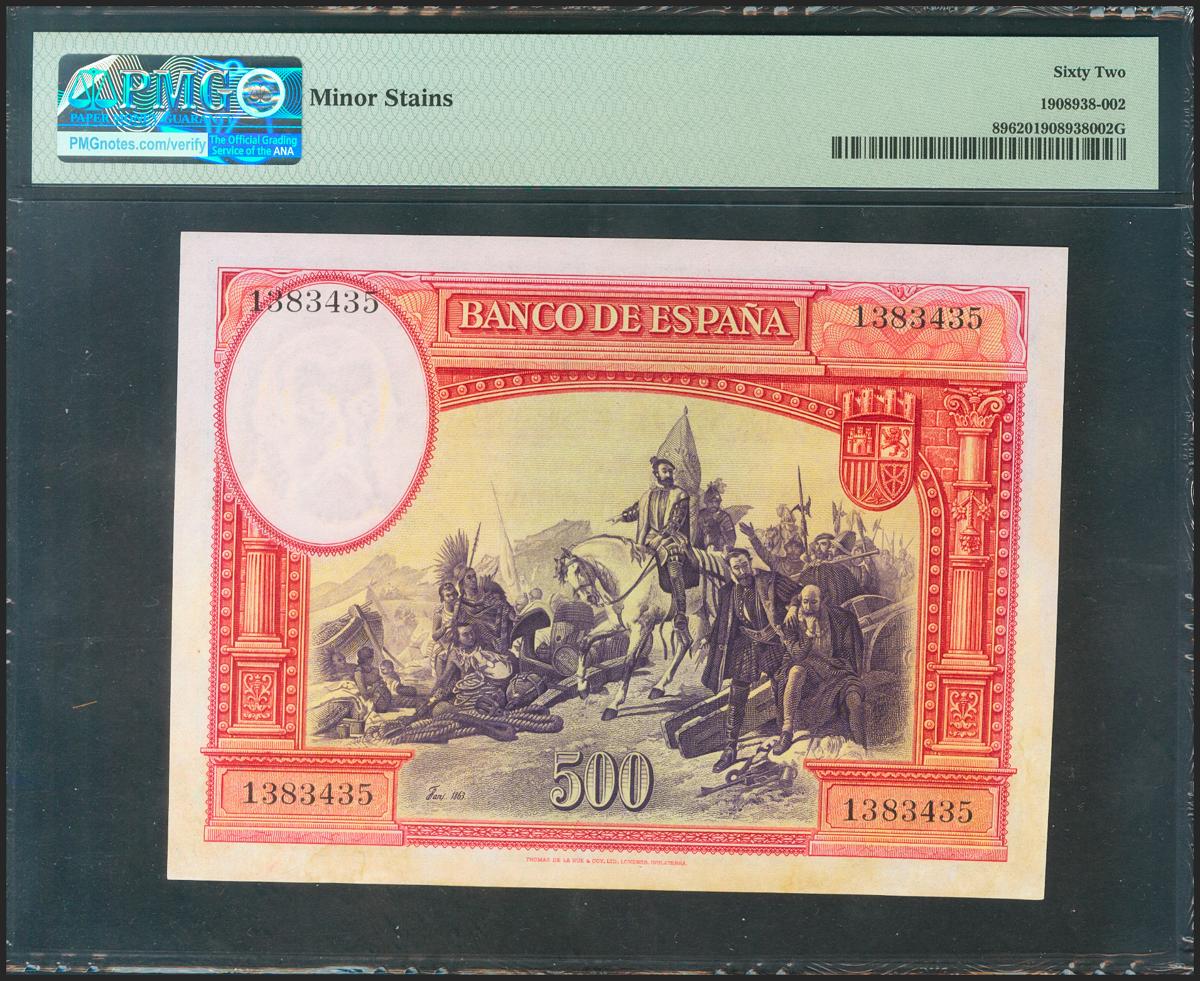 500 Pesetas. 7 de Enero de 1935. Sin serie. (Edifil 2017: 365). SC. Encapsulado PMG62.