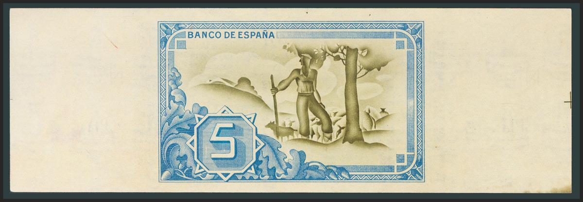 5 Pesetas. 1 de Enero de 1937. Sucursal de Bilbao, antefirma Banco Hispano Americano. Serie A y sin numeración, con ambas matrices. (Edifil 2017: 386a). EBC+.