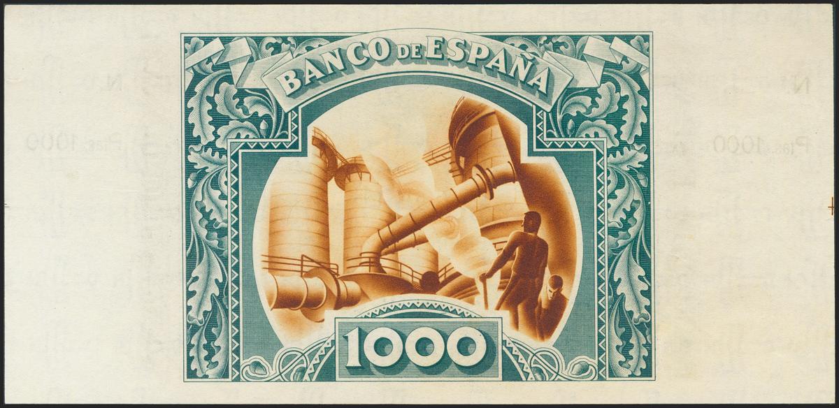 1000 Pesetas. 1 de Enero de 1937. Sucursal de Bilbao, antefirma Banco del Comercio. Sin serie y sin numeración, con ambas matrices. (Edifil 2017: NE27c). Arruguita natural del papel. SC-.