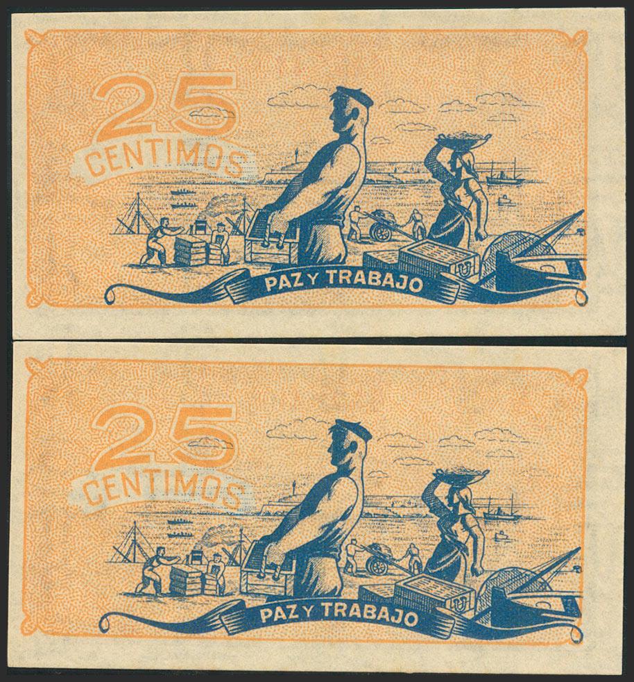 ASTURIAS Y LEON. 25 Céntimos. 1937. Pareja correlativa. Sin serie. (Edifil 2021: 394). Apresto original. SC.