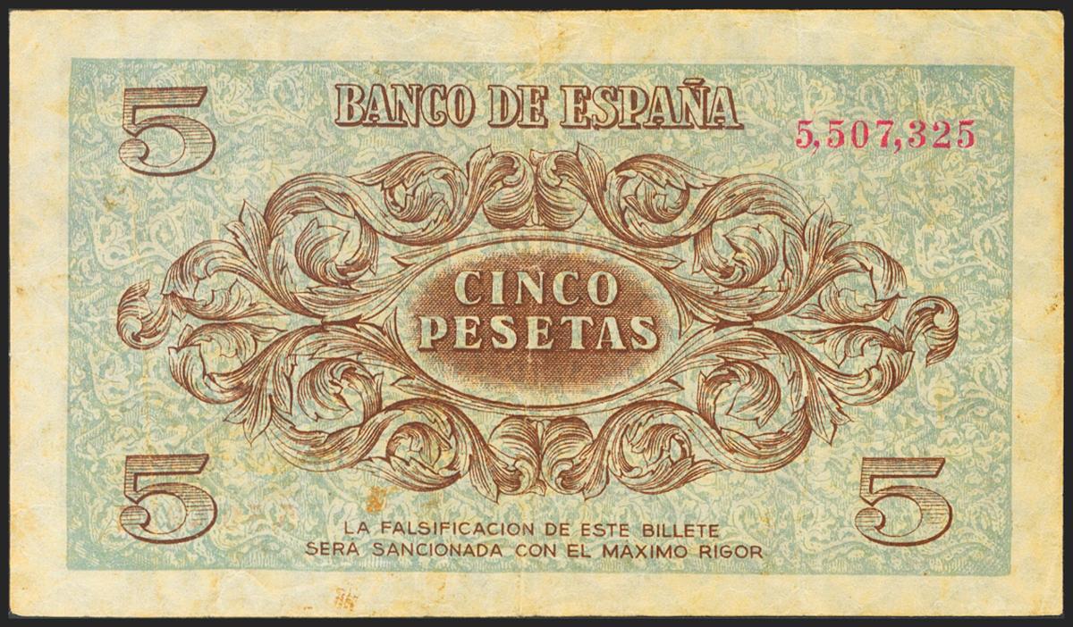5 Pesetas. 21 de Noviembre de 1936. Sin serie. (Edifil 2021: 417). Billete muy atractivo y sin reparaciones. MBC+.