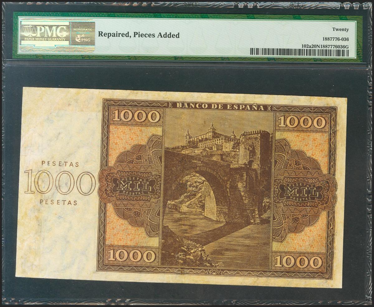 1000 Pesetas. 21 de Noviembre de 1936. Serie B. (Edifil 2021: 423a). Reparado. BC. Encapsulado PMG20NET.