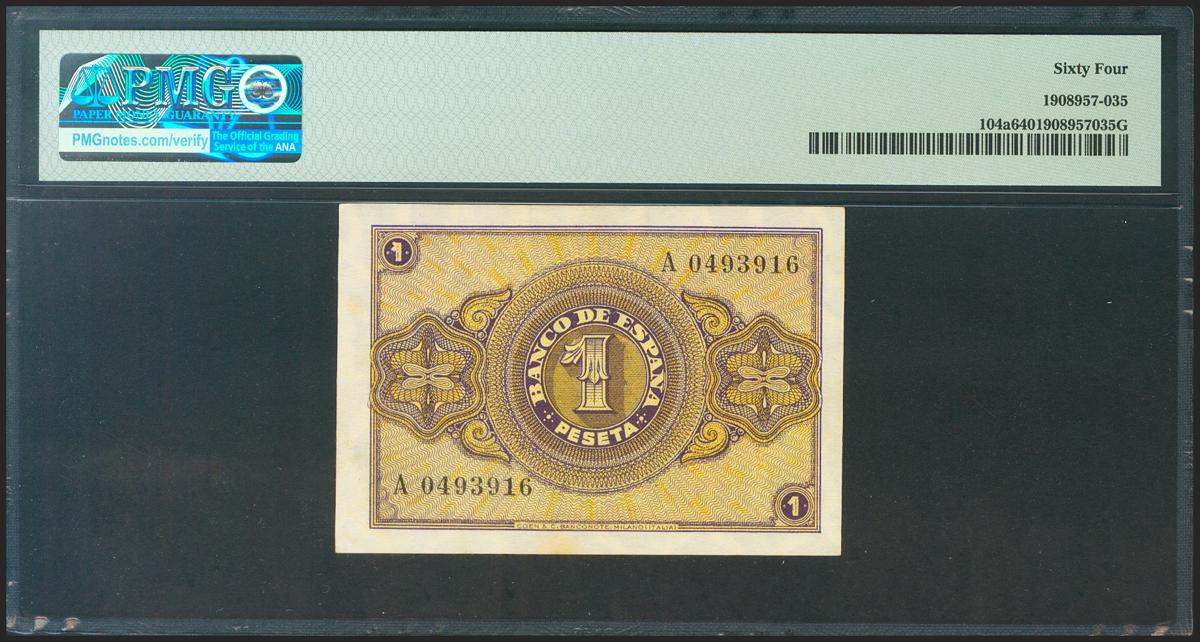 1 Pesetas. 12 de Octubre de 1937. Serie A. (Edifil 2021: 425, Pick: 104a). Inusual en esta calidad. SC. Encapsulado PMG64.