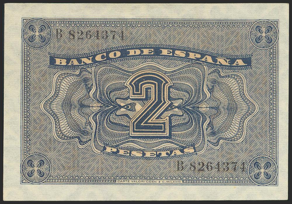 2 Pesetas. 30 de Abril de 1938. Serie B. (Edifil 2021: 429a). Apresto original. SC-.