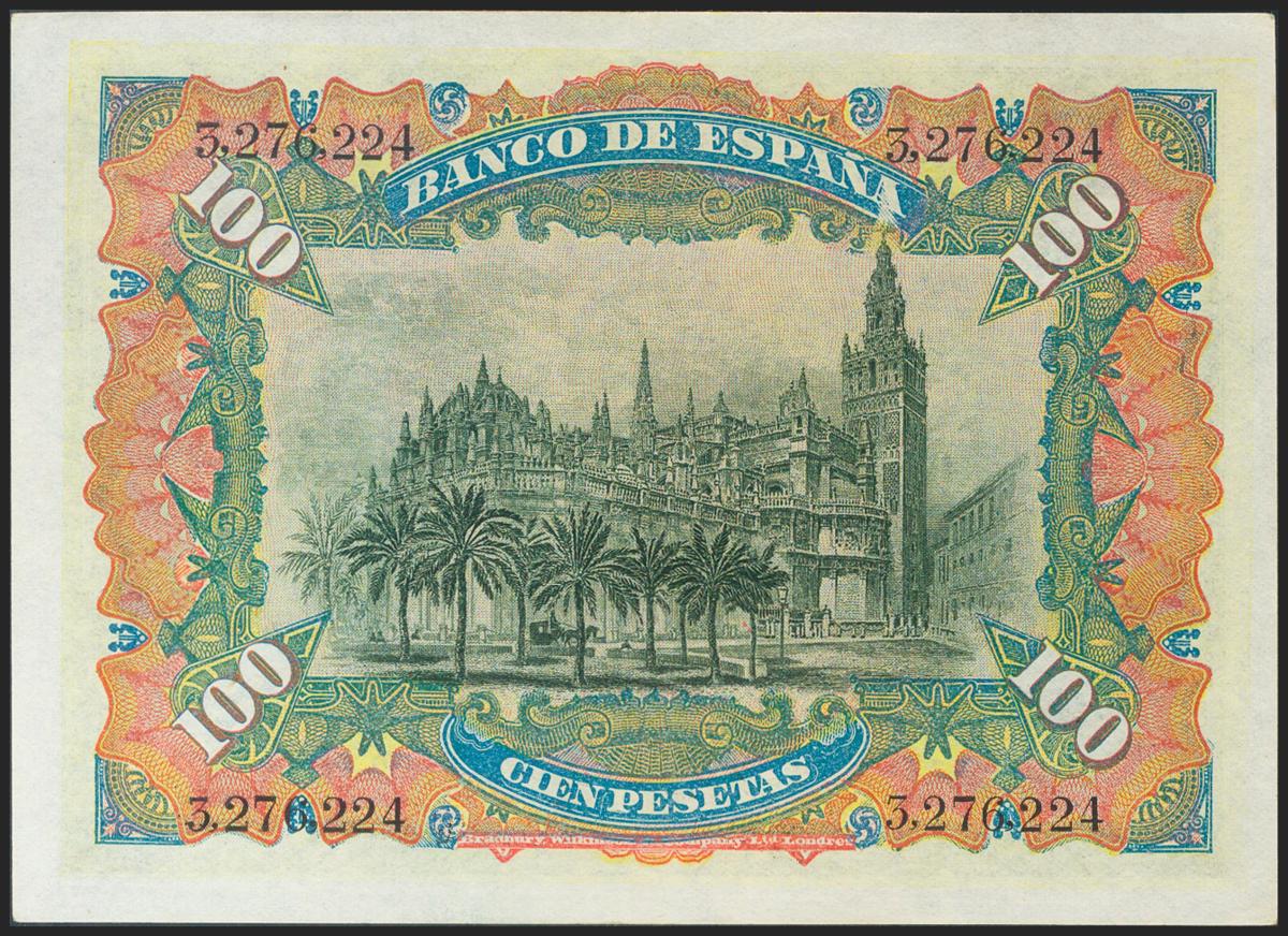 100 Pesetas. 15 de Julio de 1907. Sin serie. (Edifil 2021: 320). Conserva algo del apresto original, atractiva presencia. EBC.