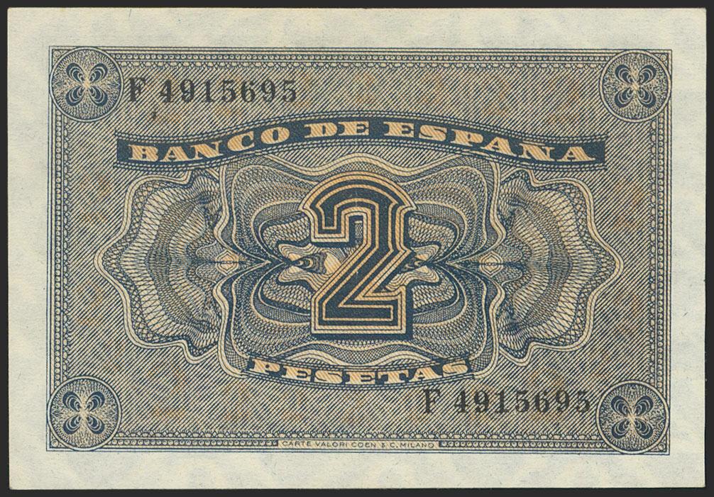 2 Pesetas. 30 de Abril de 1938. Serie F. (Edifil 2021: 429a). Conserva gran parte del apresto original. EBC+.