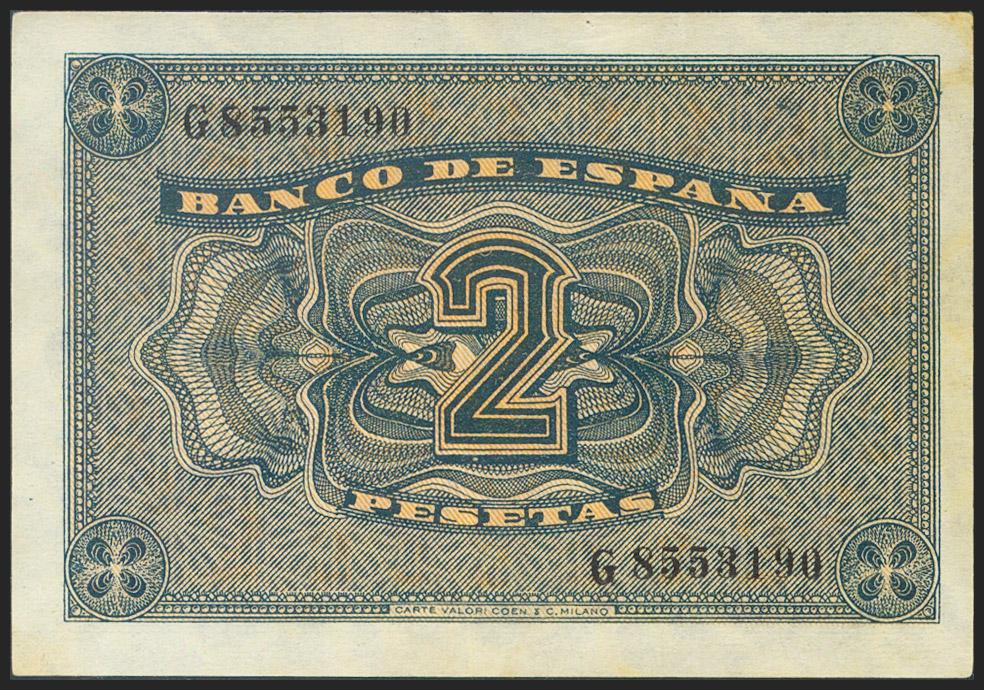2 Pesetas. 30 de Abril de 1938. Serie G. (Edifil 2021: 429a). Conserva gran parte del apresto original. EBC.