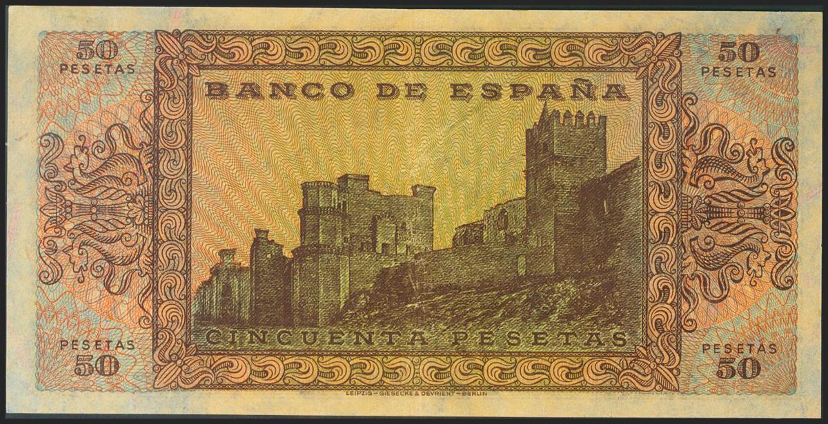 50 Pesetas. 20 de Mayo de 1938. Serie A. (Edifil 2021: 431). Presenta algo de apresto orginal. EBC-.