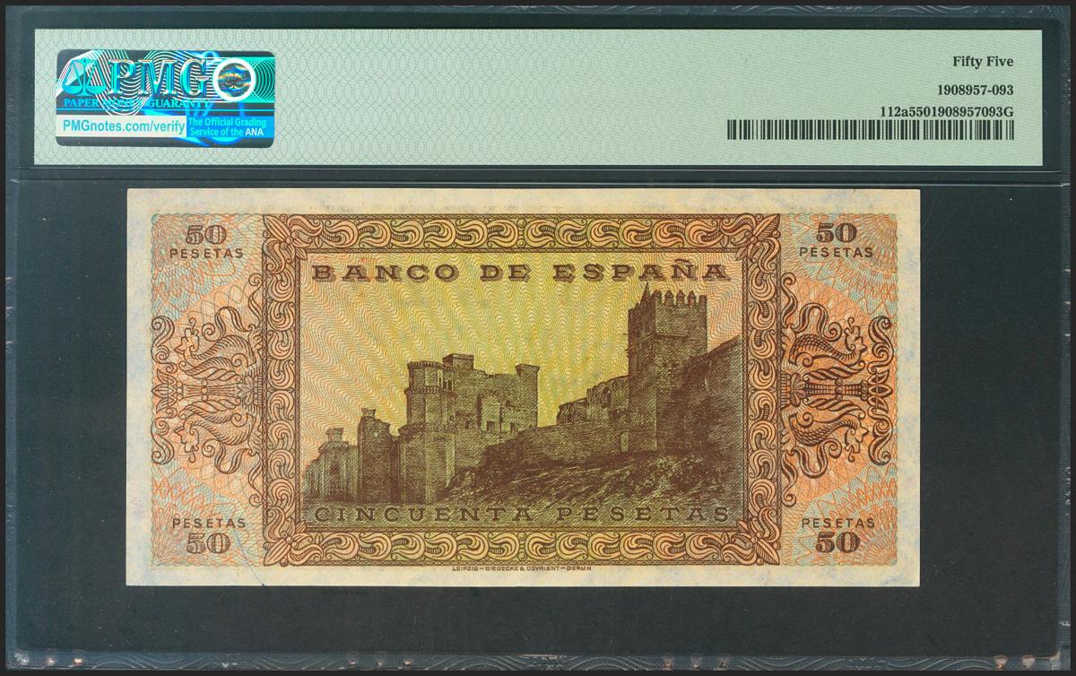 50 Pesetas. 20 de Mayo de 1938. Serie D. (Edifil 2021: 431a, Pick: 112a). EBC+. Encapsulado PMG55.