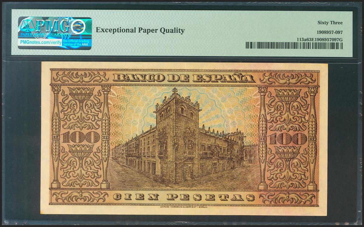100 Pesetas. 20 de Mayo de 1938. Serie A. (Edifil 2021: 432, Pick: 113a). Apresto original. SC. Encapsulado PMG63EPQ.