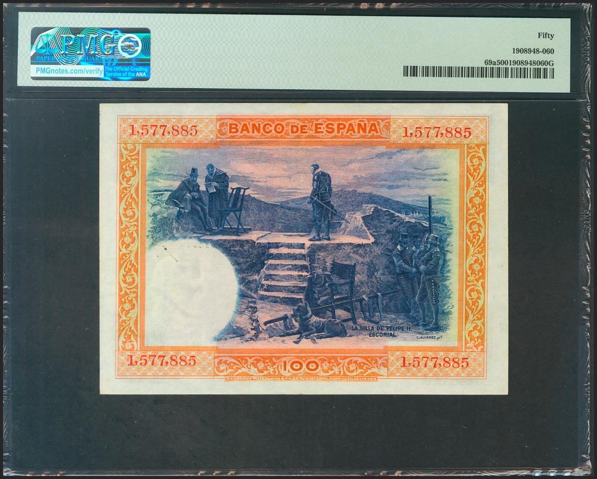 100 Pesetas. 1 de Julio de 1925. Sin serie. (Edifil 2021: 323, Pick: 69a). Inusual en esta calidad. EBC. Encapsulado PMG50.