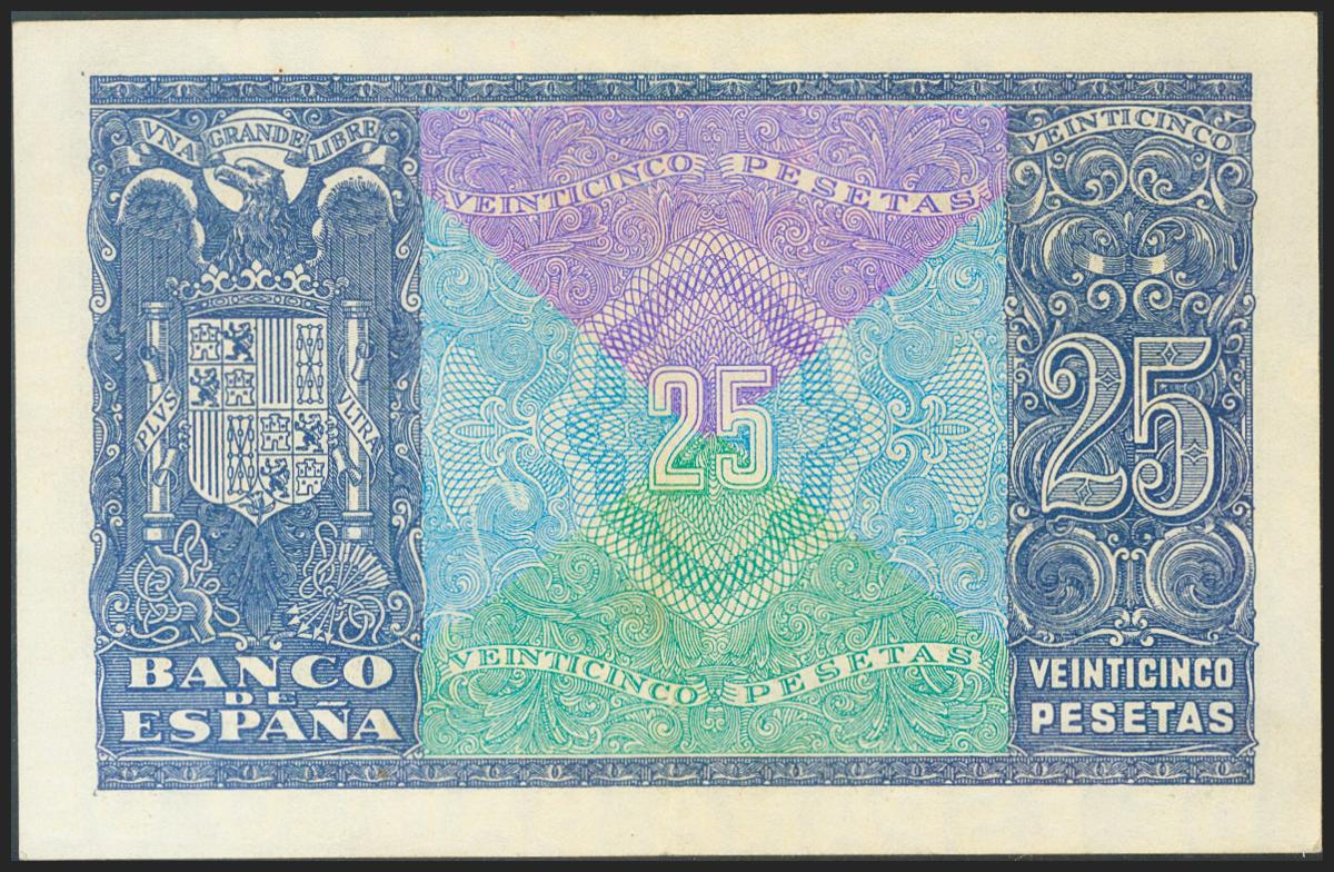 25 Pesetas. 9 de Enero de 1940. Serie A. (Edifil 2021: 436). Presenta gran parte del apresto original. EBC+.