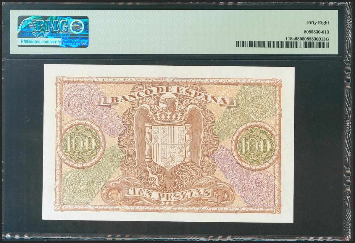 100 Pesetas. 9 de Enero de 1940. Serie E. (Edifil 2021: 438a). EBC+. Encapsulado PMG58.