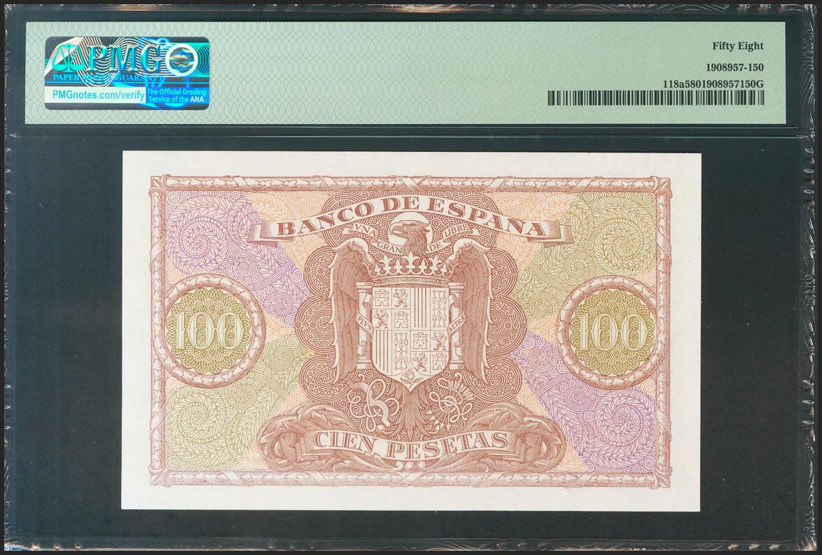 100 Pesetas. 9 de Enero de 1940. Serie H. (Edifil 2021: 438a, Pick: 118a). EBC++. Encapsulado PMG58.