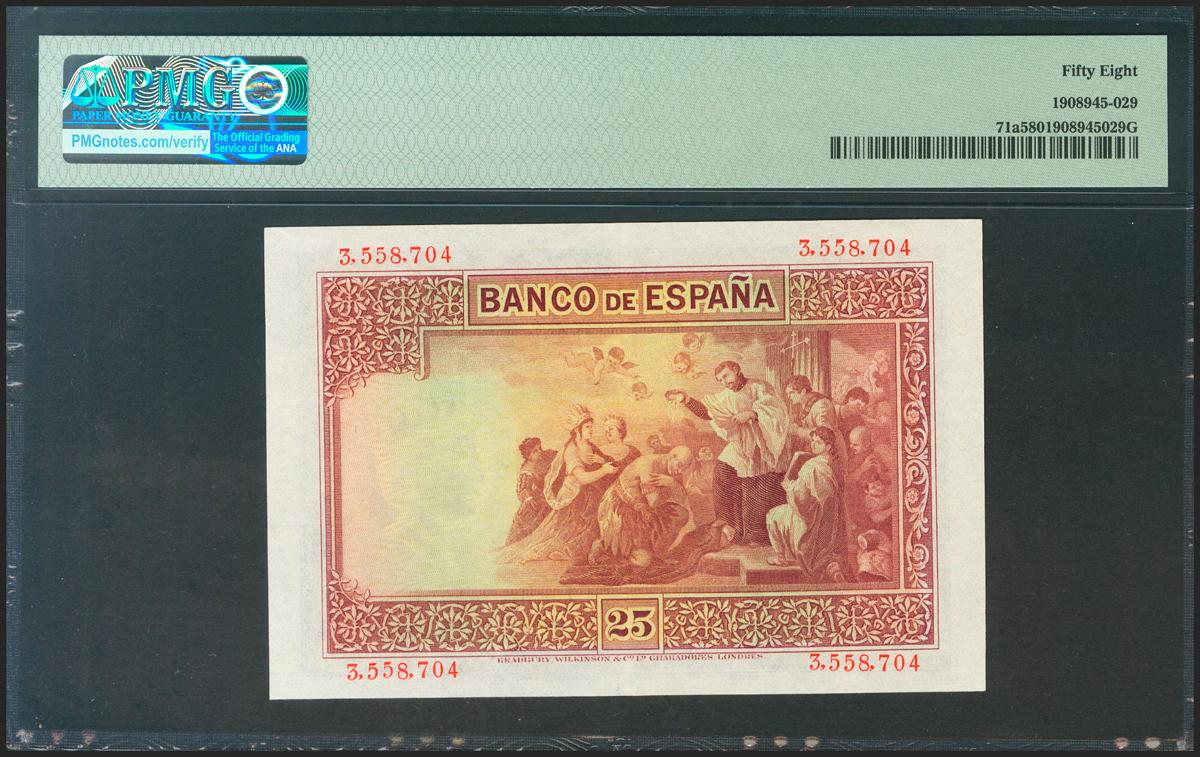 25 Pesetas. 12 de Octubre de 1926. Sin serie. (Edifil 2021: 325, Pick: 71a). Raro en esta calidad. EBC++. Encapsulado PMG58.