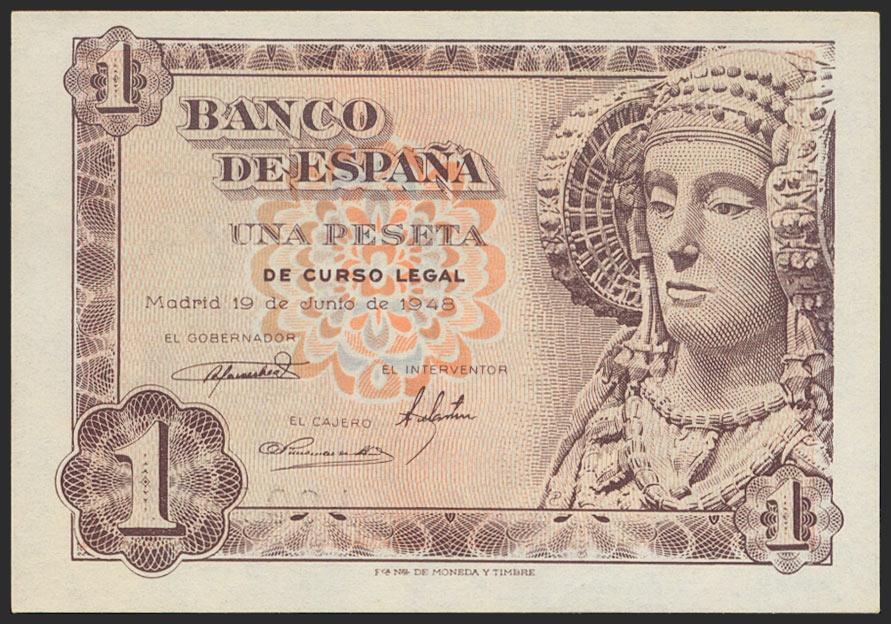 1 Peseta. 19 de Junio de 1948. Serie A. (Edifil 2021: 457a). Apresto original. SC.