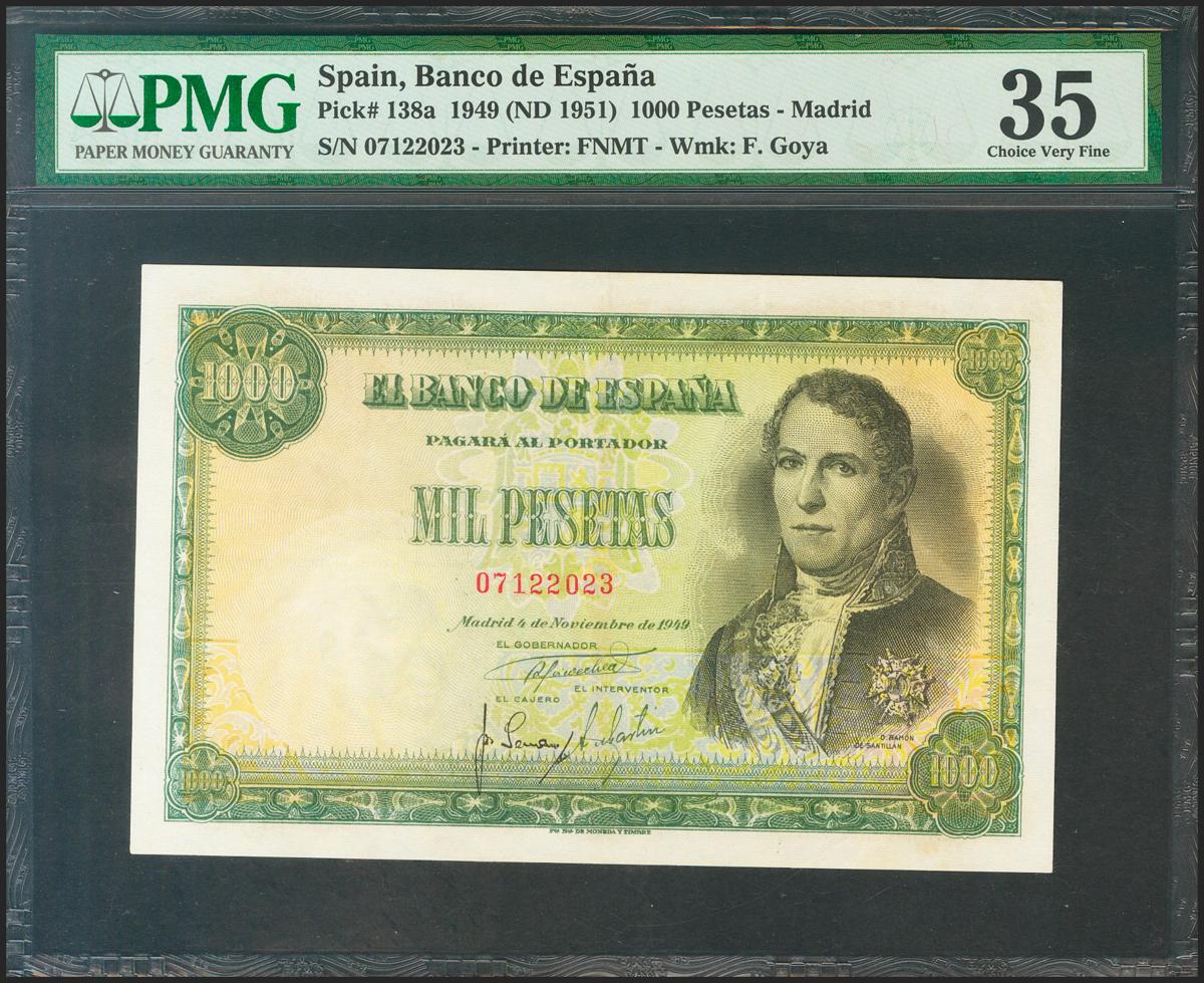1000 Pesetas. 4 de Noviembre de 1949. Sin serie. (Edifil 2021: 458). MBC+. Encapsulado PMG35.