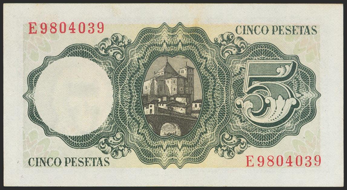 5 Pesetas. 16 de Agosto de 1951. Serie E. (Edifil 2021: 459a). Apresto original. SC.