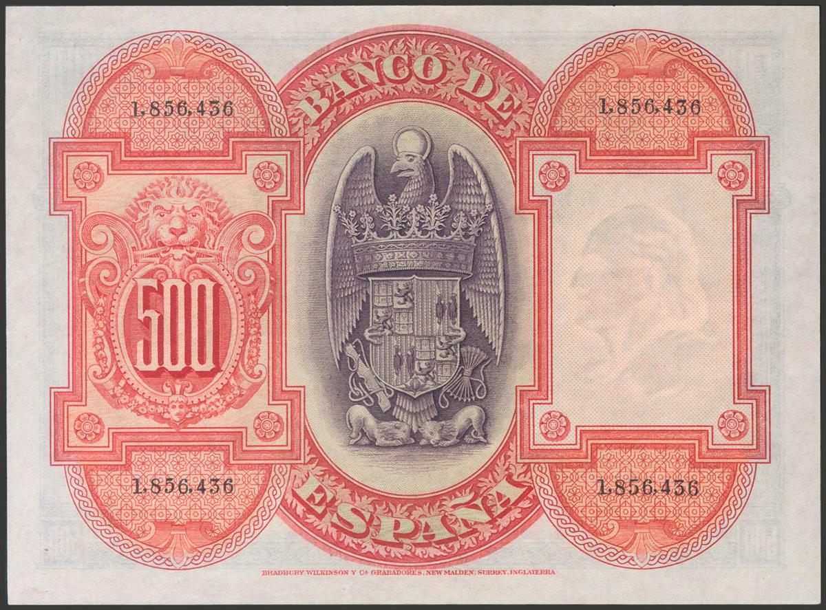 500 Pesetas. 24 de Julio de 1927. Numeración superior a 1.602.000. (Edifil 2017: 352). Conserva todo el apresto original. EBC+.