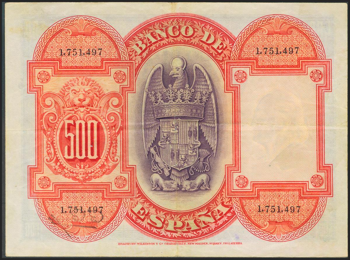 500 Pesetas. 24 de Julio de 1927. Sin serie y con numeración posterior 1602.000. (Edifil 2021: 352). MBC.