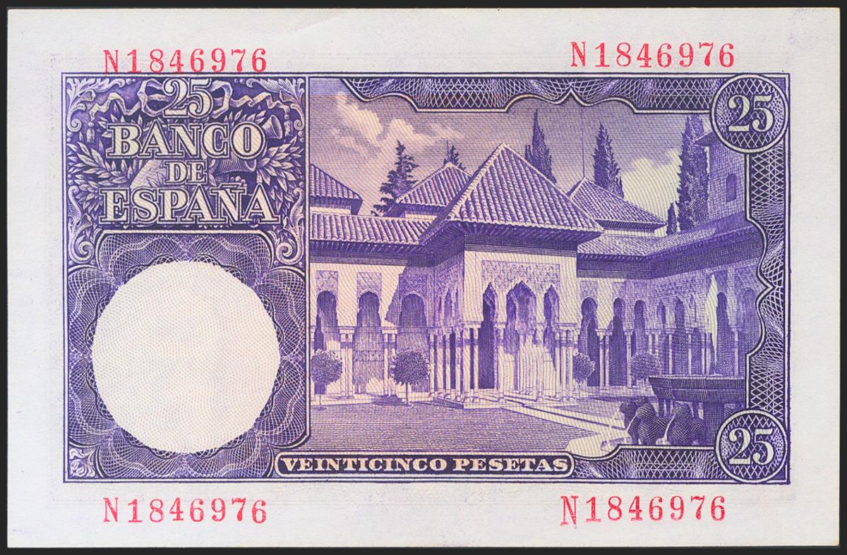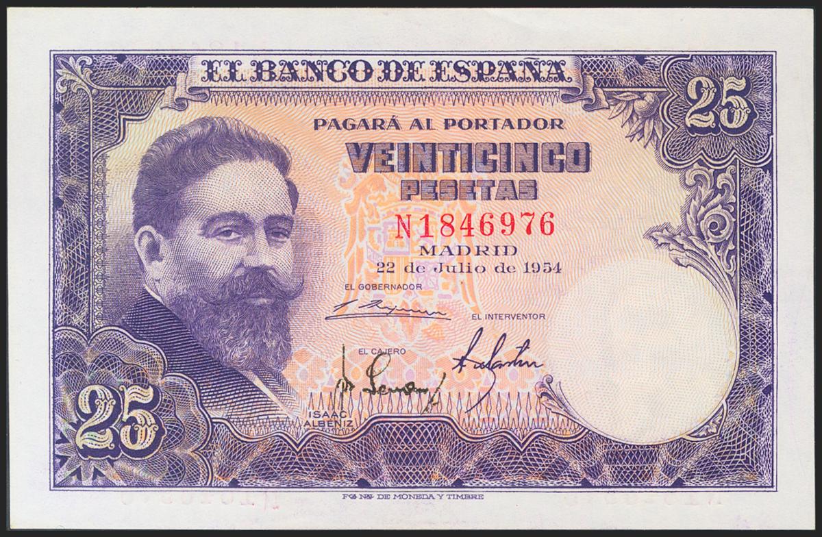 25 Pesetas. 22 de Julio de 1954. Serie N. (Edifil 2021: 467a). Conserva todo su apresto original. SC-.