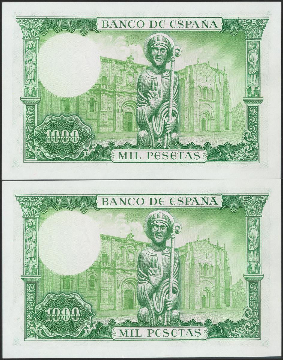 1000 Pesetas. 19 de Noviembre de 1965. Pareja correlativa. Serie I. (Edifil 2017: 471b). Apresto original. SC.