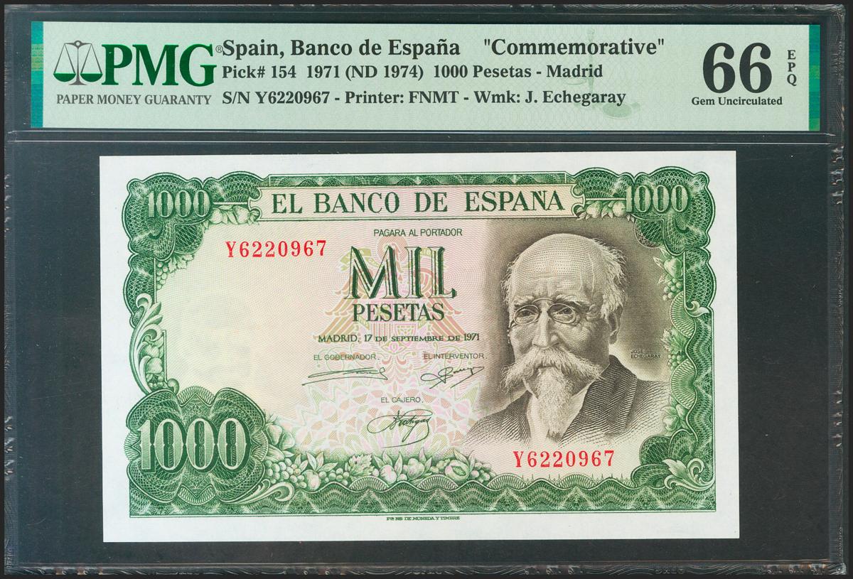 1000 Pesetas. 17 de Septiembre de 1971. Serie Y. (Edifil 2021: 474b). Apresto original. SC. Encapsulado PMG66EPQ.