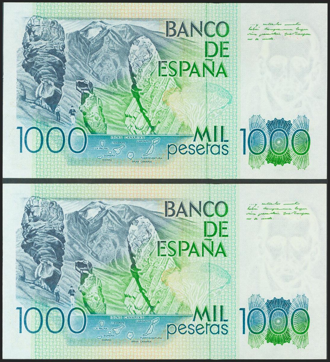 1000 Pesetas. 23 de Octubre de 1979. Pareja correlativa. Sin serie. (Edifil 2021: 477). SC.