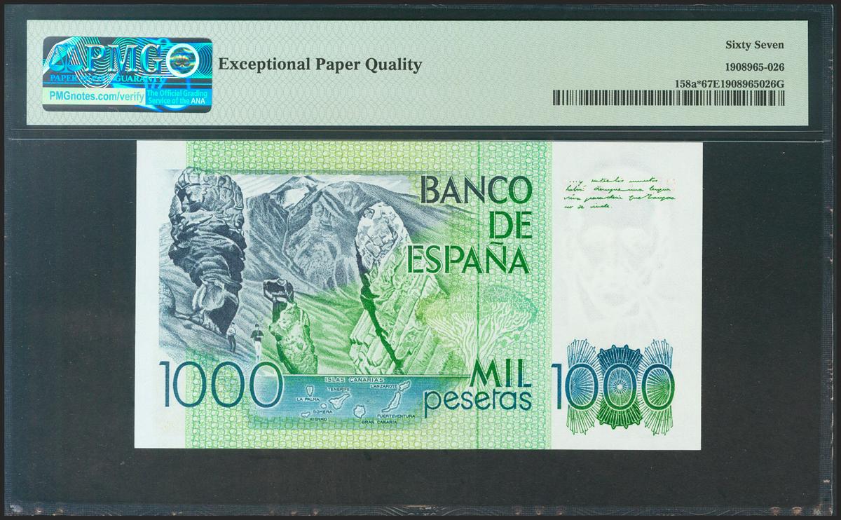 1000 Pesetas. 23 de Octubre de 1979. Serie especial 9B. (Edifil 2021: 477b, Pick: 158a*). Rarísimo en esta excepcional calidad, apresto original. SC. Encapsulado PMG67EPQ.