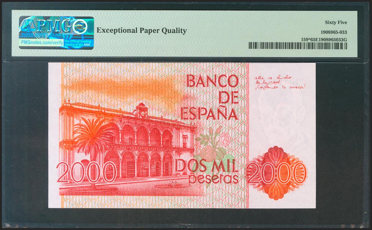 2000 Pesetas. 22 de Julio de 1980. Serie especial 9A. (Edifil 2021: 479b, Pick: 159*). Raro en esta calidad, apresto original. SC. Encapsulado PMG65EPQ.