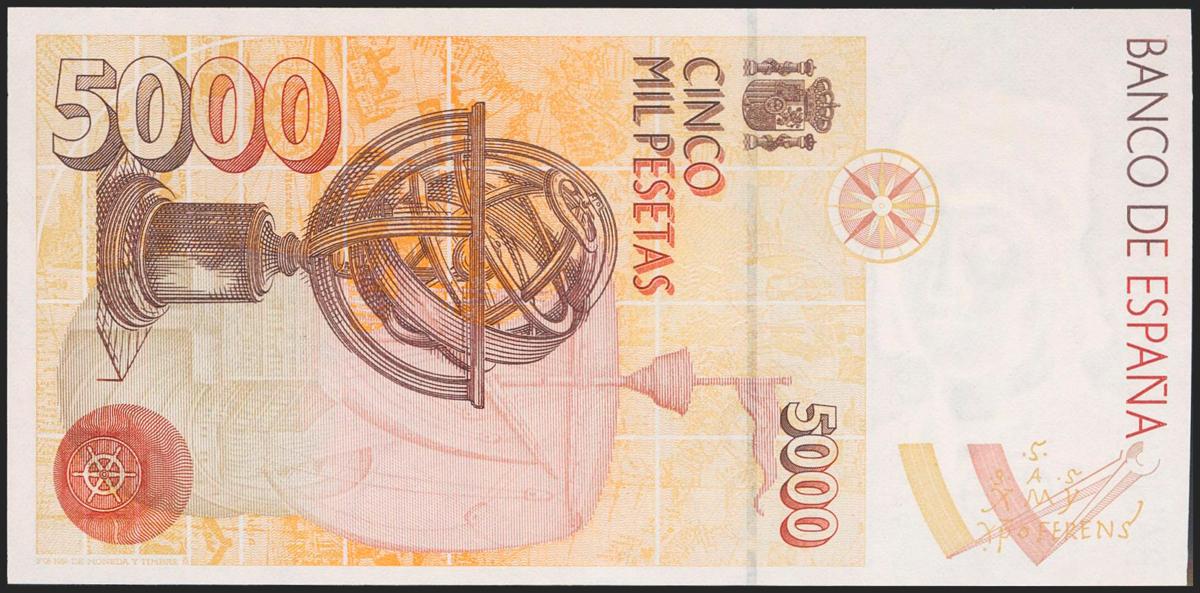 5000 Pesetas. 12 de Octubre de 1992. Serie 9A, numeración especial. (Edifil 2017: 484b). SC.