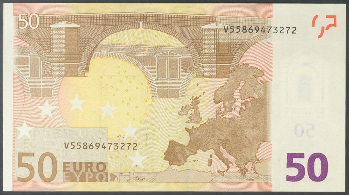 50 Euros. 1 de Enero de 2002. Firma Draghi. Serie V (España). (Edifil 2021: 489B). SC.
