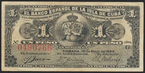 BANCO ESPAÑOL DE LA ISLA DE CUBA. 1 Peseta. 15 de Mayo de 1896. Serie G. (Edifil 2017: 71). MBC+.