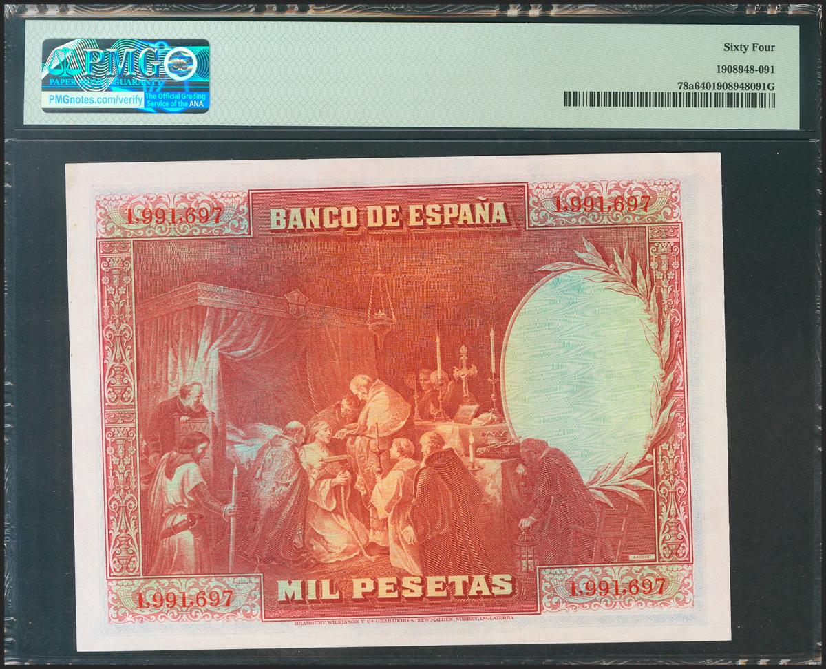 1000 Pesetas. 15 de Agosto de 1928. Sin serie. (Edifil 2021: 357, Pick: 78a). SC. Encapsulado PMG64.